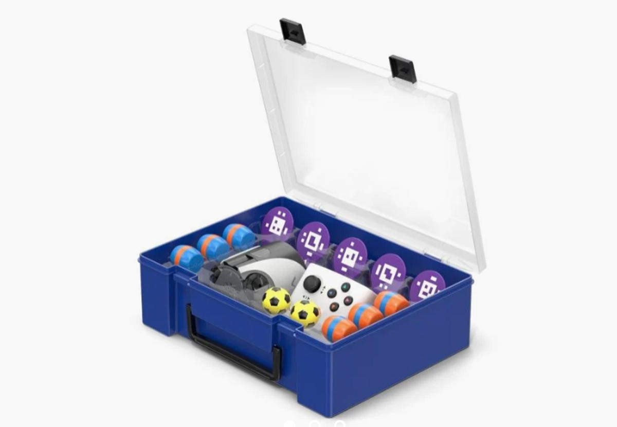 AIM机器人x1 单杆遥控器 USB 电缆(A-C,1m)x1 橙色桶x3 蓝色桶x3 球x2 AprilTag 标志(ID 0-4)x5