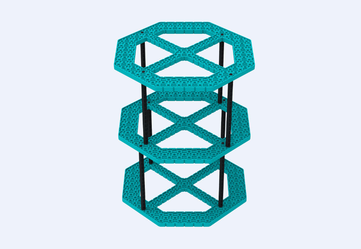 VEX IQ挑战赛2020-2021赛季-“拔地而起”比赛道具,包含3块蓝绿色8边形桁架矩形块,8根8x撑柱。
