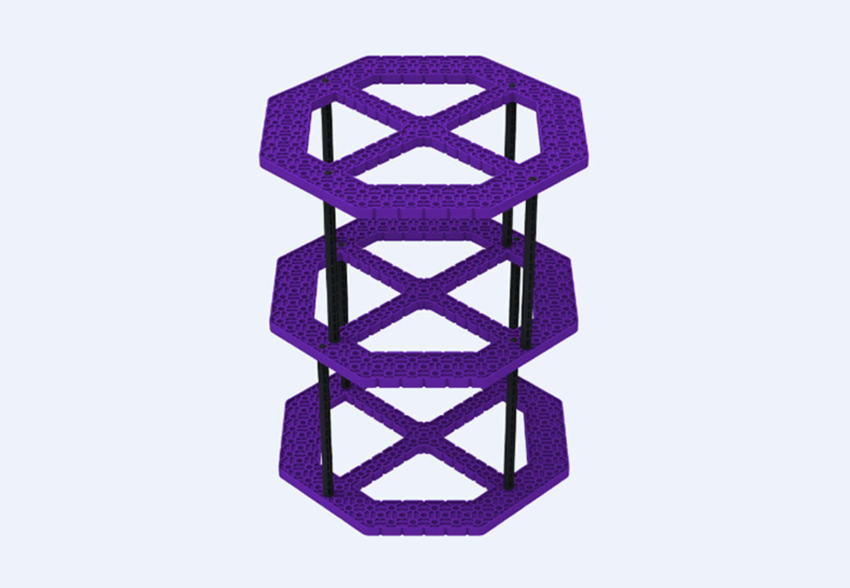 VEX IQ挑战赛2020-2021赛季-“拔地而起”比赛道具,包含3块紫色8边形桁架矩形块,8根8x撑柱。