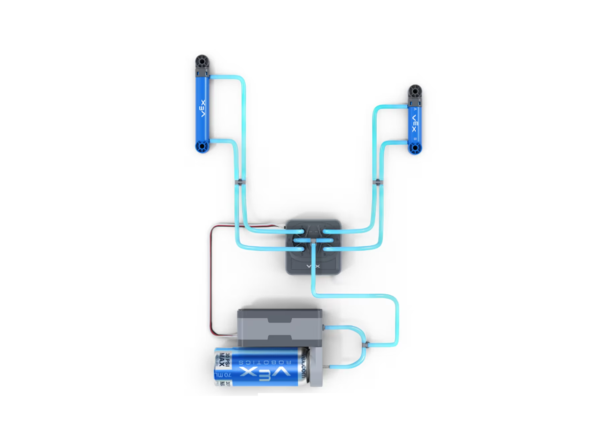 该套件包含让教室或 VEX IQ 机器人竞赛团队使用气动技术启动和运行所需。